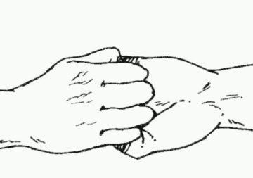 соединить ладони так, чтобы правая рука внутренней поверхностью «смотрела» наружу;