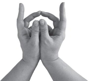 Вытягивайте указательные пальцы вперед, касаясь лишь подушечками, а средние пальцы разгибайте и упирайте их друг в друга кончиками.