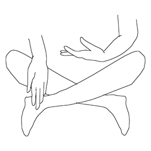 Раскрытую ладонь правой руки опустить вниз таким образом, чтобы ее внутреннее ребро было повернуто вперед. Левую ладонь положить на колено. Наблюдаем за дыханием и думаем о том, о чем написано выше.