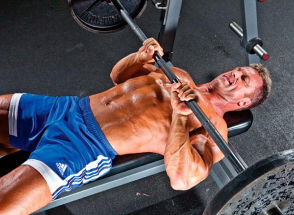 Важно: это упражнение нельзя выполняя с существенными весами в «билдерском» стиле. Если вы берете штангу уже плеч, и направляете локти в стороны, вес снаряда должен быть процентов на 30 меньше, чем при жиме с ладонями на ширине плеч и локтями к бокам.