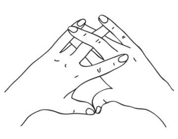 Ногтевые фаланги больших пальцев сомкнуты. Основной фалангой левого указательного пальца касайтесь основания правого указательного. Средний правой руки сверху касается основных фаланг левых среднего и безымянного. Безымянный и мизинец правой руки находятся над левым безымянным. Основание правого мизинца находится под ногтевой фалангой левого среднего пальца. Левый мизинец закрепляется с помощью ногтевой фаланги правого среднего пальца, в то же время находясь над правым безымянным.