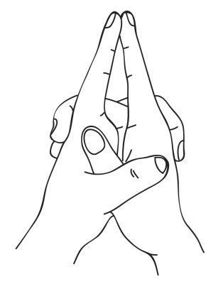 Кончик большого пальца, который расположен сверху, должен оказаться в промежутке между другим большим и указательным.