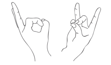 большой, средний и мизинец на правой ладони также соединить кончиками, а другие пальцы расправить без усилия;