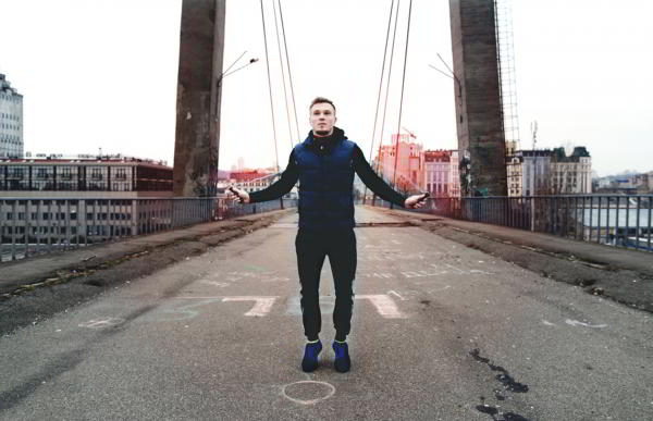 Хватай скакалку за оба конца и, придавая ей вращательное движение кистями, прыгай через нее. Держи корпус собранным, но не приземляйся на прямые ноги — пружинь при каждом прыжке.