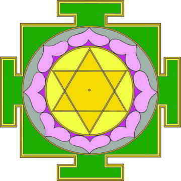 Янтра, наделенная могуществом Лакшми. Обогащает изобилием, благополучием, наделяет целомудрием, великодушием, щедролюбием. Использовать янтру можно как в семейных взаимоотношениях, так и в деловой нише. Золотые пластины часто ложатся в основу изготовления янтры.