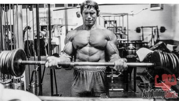 Для увеличения массы бицепсов Арнольд Шварценеггер рекомендует использовать базовое упражнение — классический подъем штанги на бицепсы.
